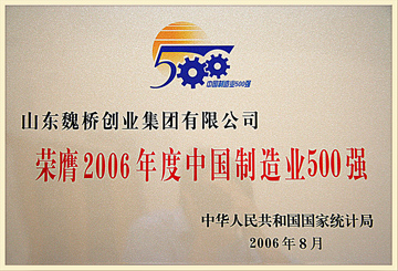 荣膺2006年度中国制造业500强
